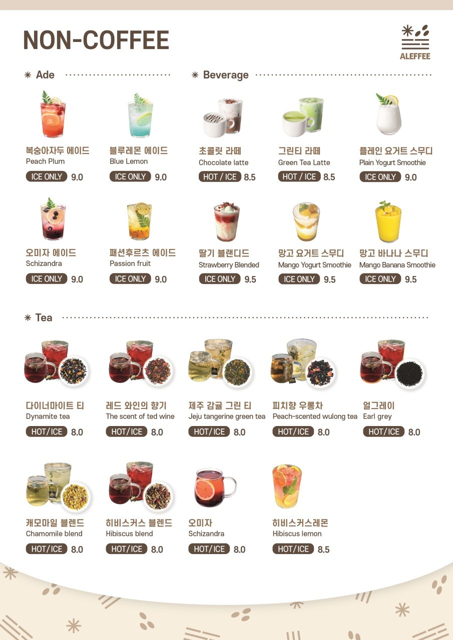 아레피는 커피, 논커피, 베이커리 그리고 식사까지 판매하고 있기 때문에