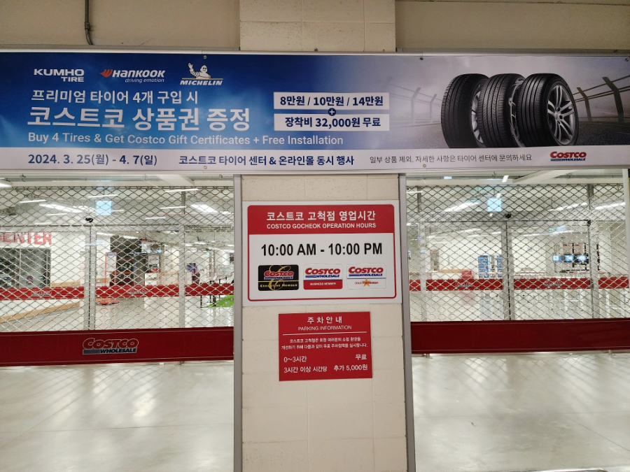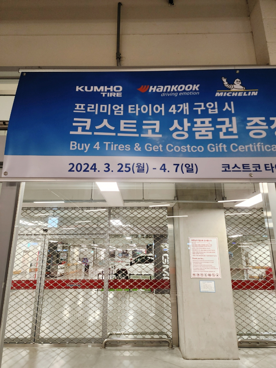 코스트코 타이어 행사 기간은 2024년 3월 25일 월요일에 시작해서