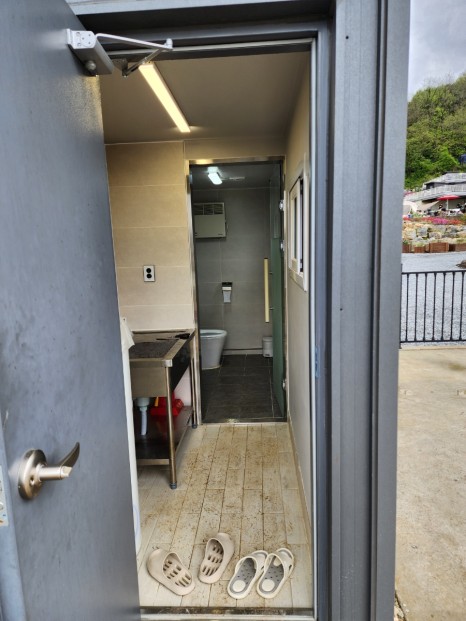 샤워실 밖은 콘크리트에 심지어 비까지 오니