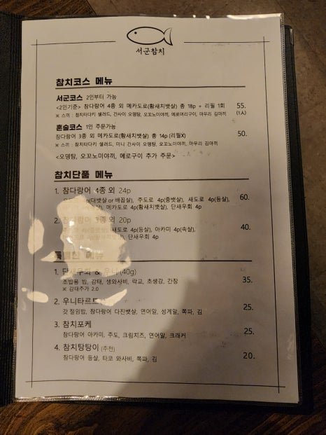 메뉴를 보면 참치코스, 참치단품을 시작으로