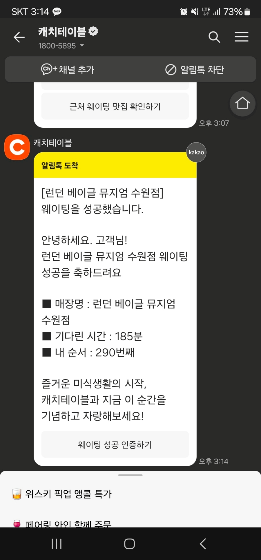 웨이팅은 185분 걸렸습니다.
