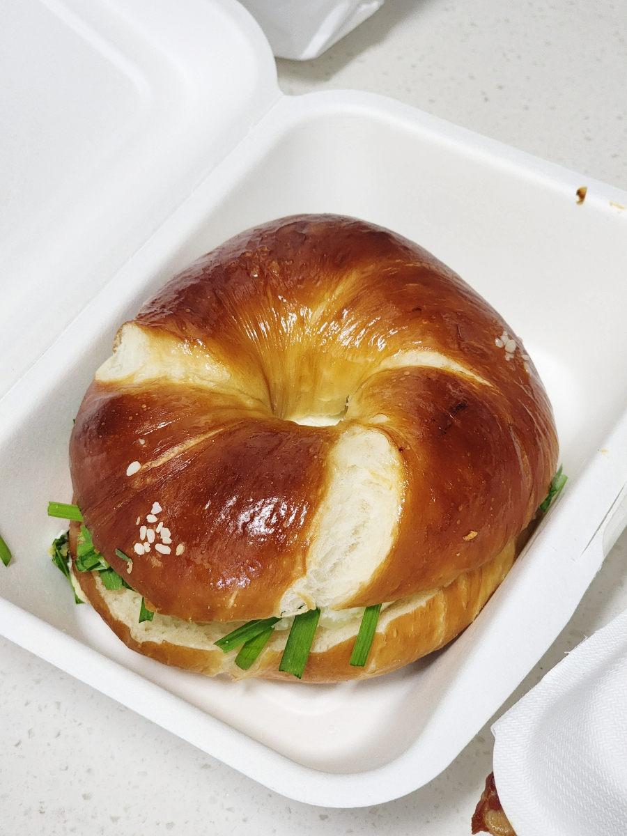 베이글 자체가 프레첼이라 소금이 들어가 짭쪼롬하고