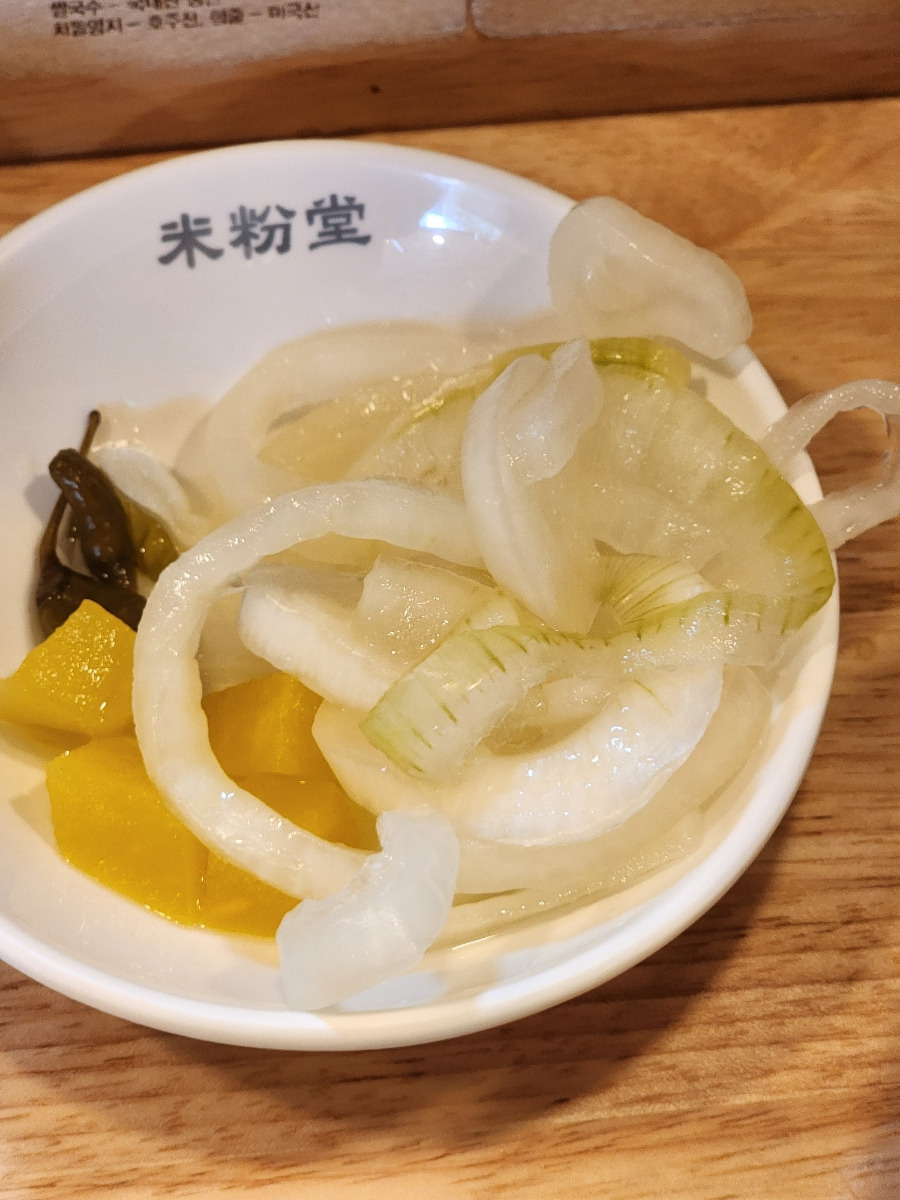 양파절임과 고추장아찌, 단무지가 나오는데