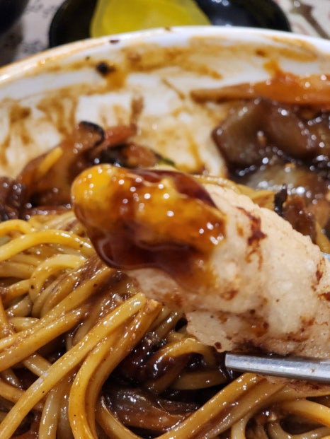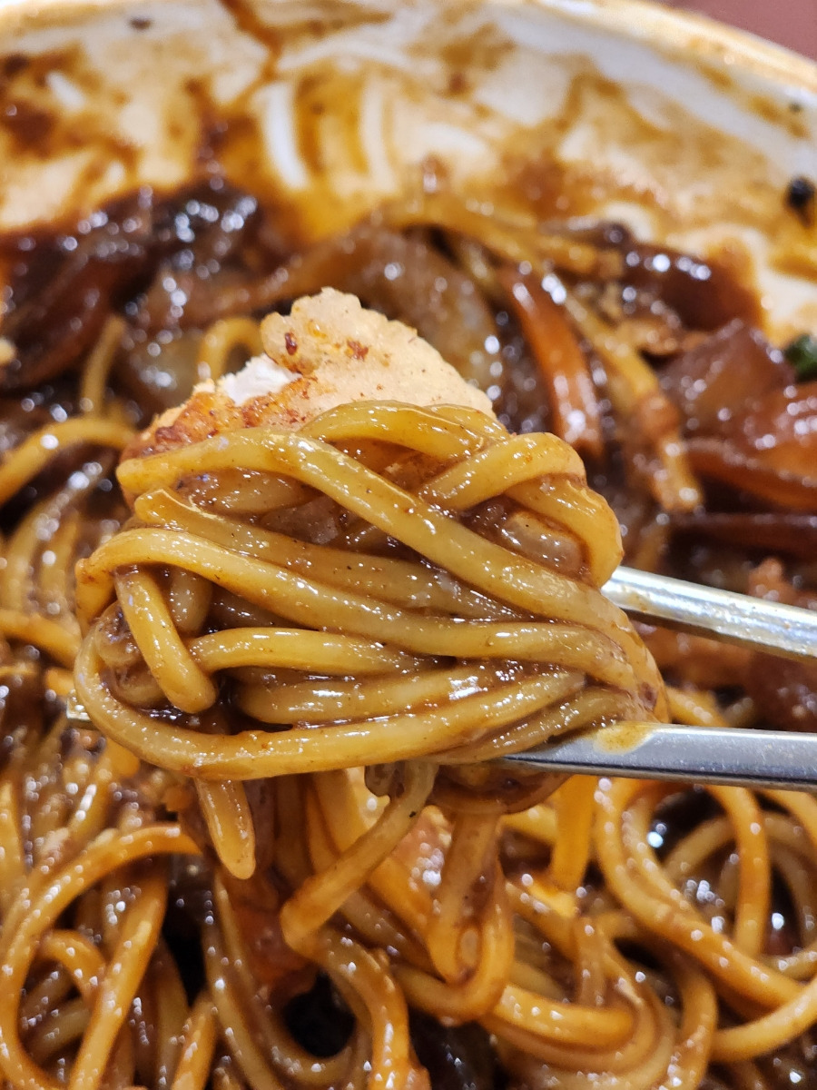 약간 기름지고 짜장면, 짬뽕 소스가 듬뿍 들어가 있어서