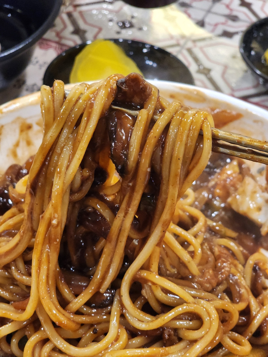달달한 짜장면에다가 매콤한 복음짬뽕을 넣어서 섞은 맛입니다.