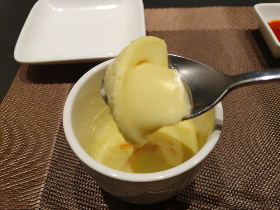 가장 처음 나오는 음식은 계란찜입니다.