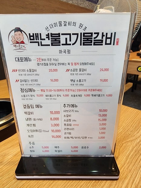 마곡 맛집 백년불고기물갈비 메뉴
