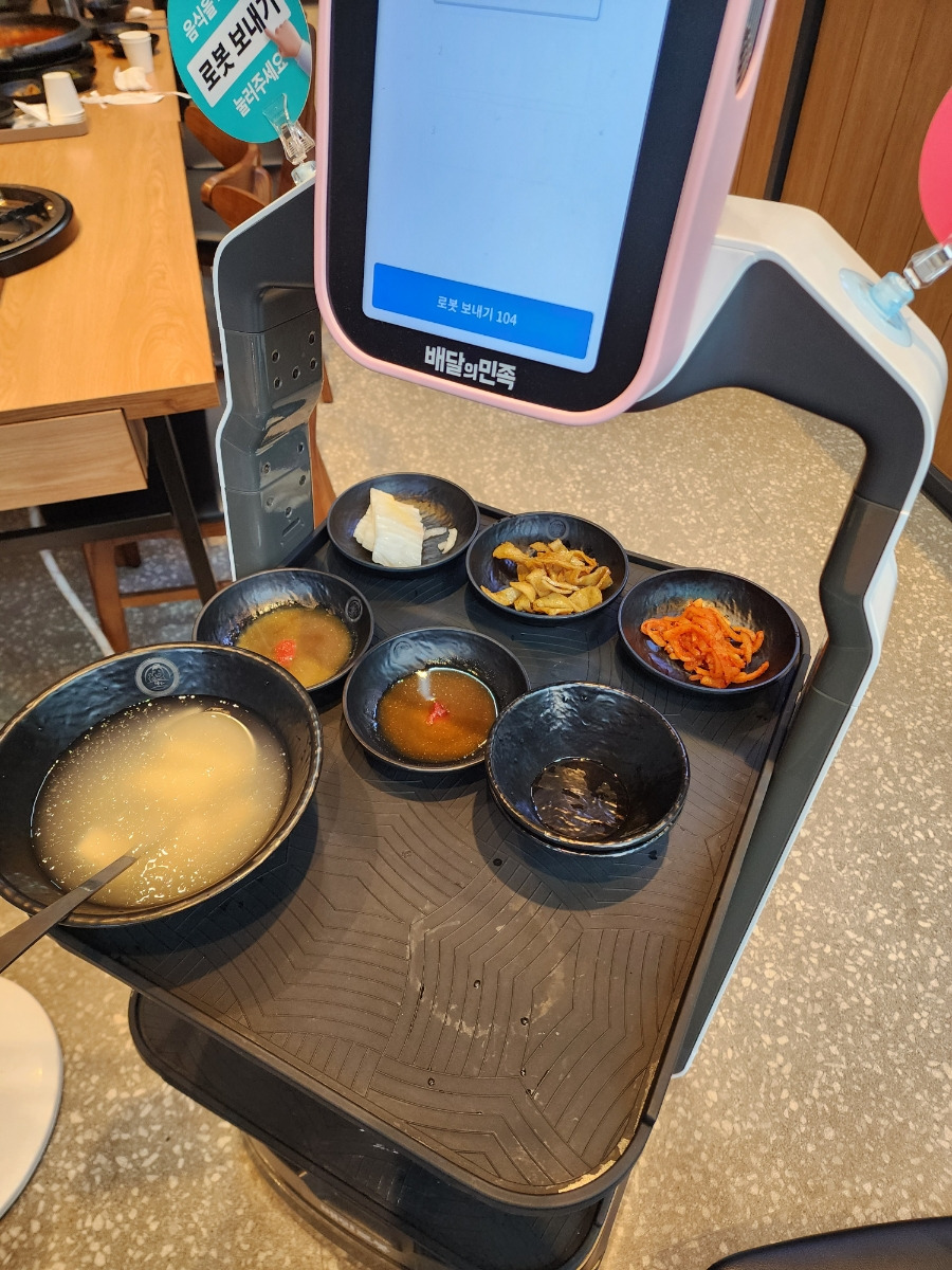 밑반찬은 로봇군이 서빙을 해줬어요.