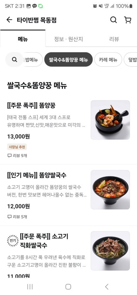 볶음밥 쌀국수 그리고 똠양꿍까지