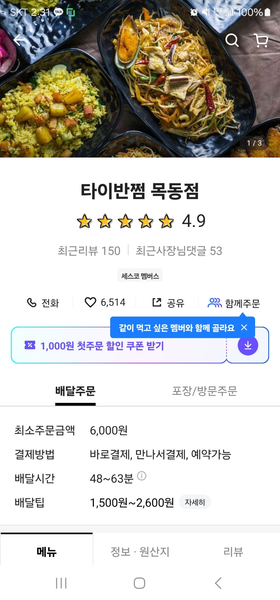 일반 음식점보다 더 저렴하게 주문을 했는데