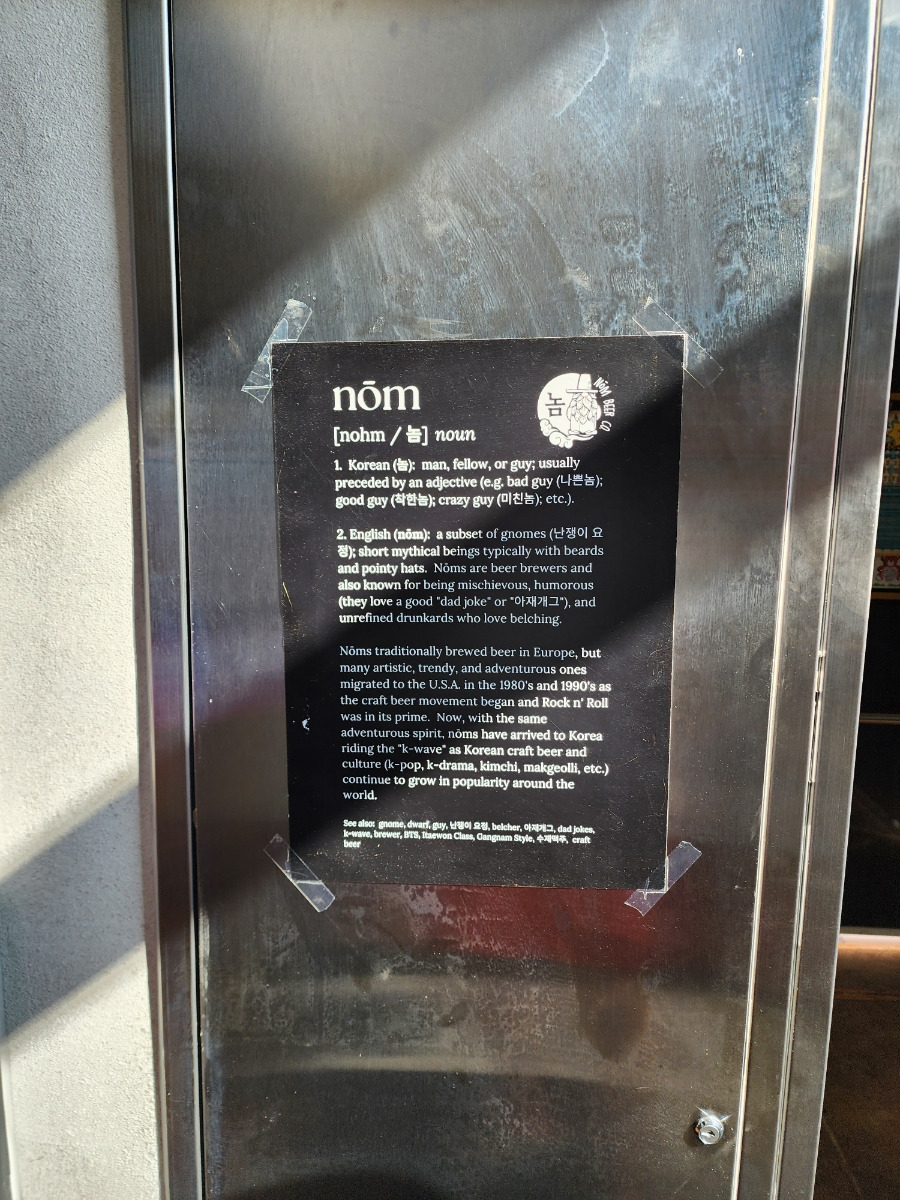 놈맥주컴퍼니 상호명에 대한 이야기를 읽어볼 수 있는데 은근 많은 뜻이 들어가있고