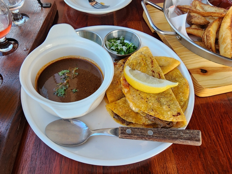 퀘시디야에 들어가는 소소기를 끓인 육수로 만들기 때문에 맛이 깊고 이국적인 것이 특징이었어요