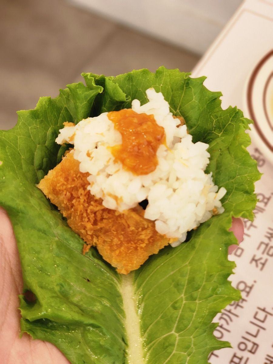 생전 처음 보는 돈까스와 상추의 조합