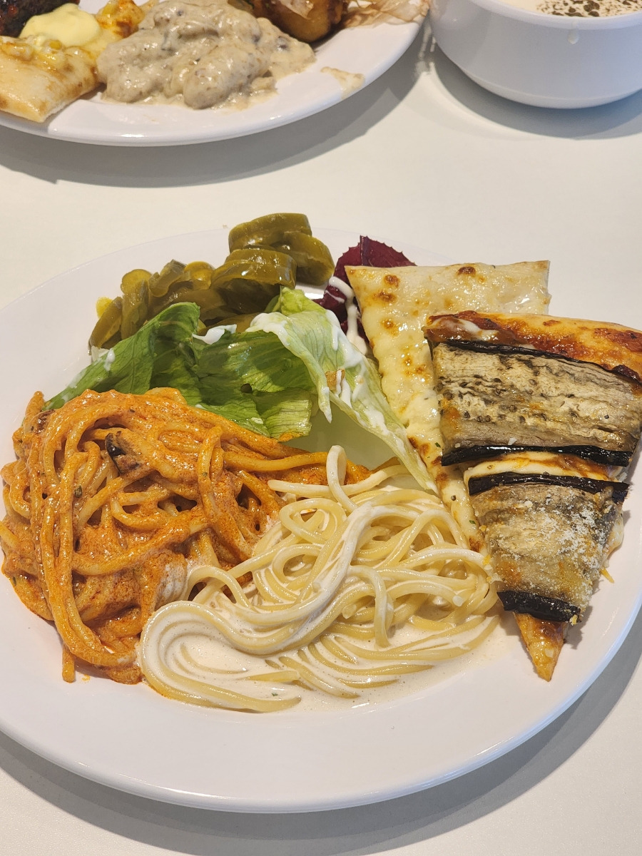 피자중에서는 갓 나온 가지피자가 압도적으로 맛있었고 나머지는 평범했어요.