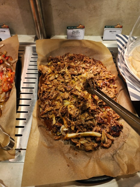 제가 좋아하는 타코를 만들어 먹을 수 있는 코너가 있었고 홍콩식 돼지고기도 있어서