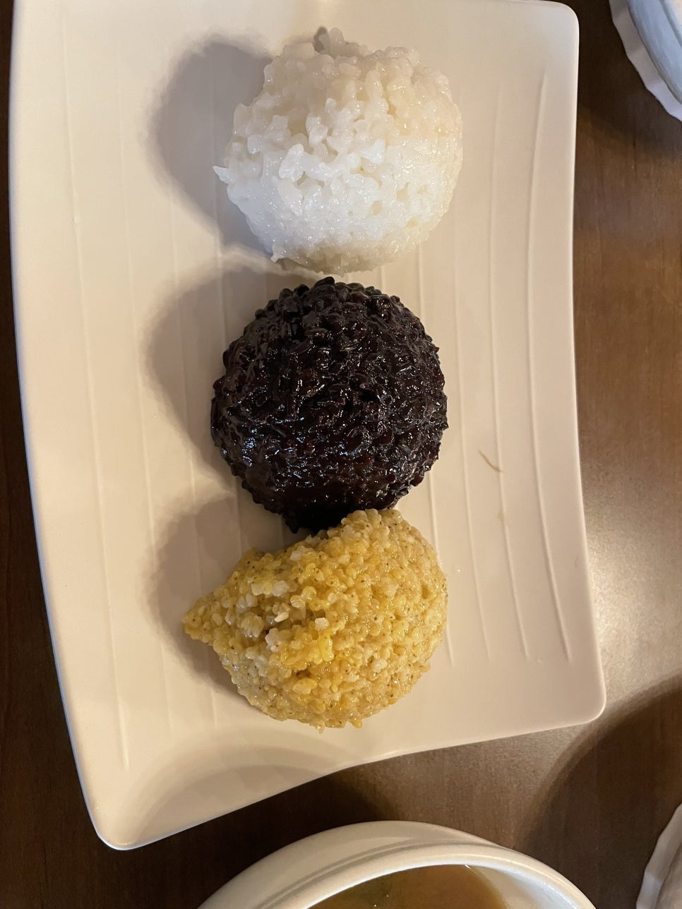 밥을 세 가지 컬러로 내어주세요.
