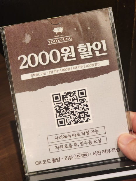 영수증 리뷰를 하면 2천원 할인을 해줍니다.