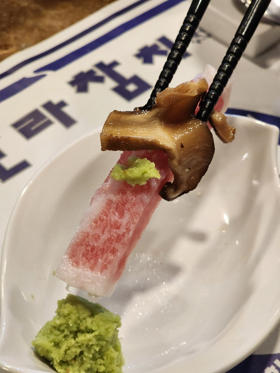 사장님 추천대로 소금, 와사비, 버섯조림