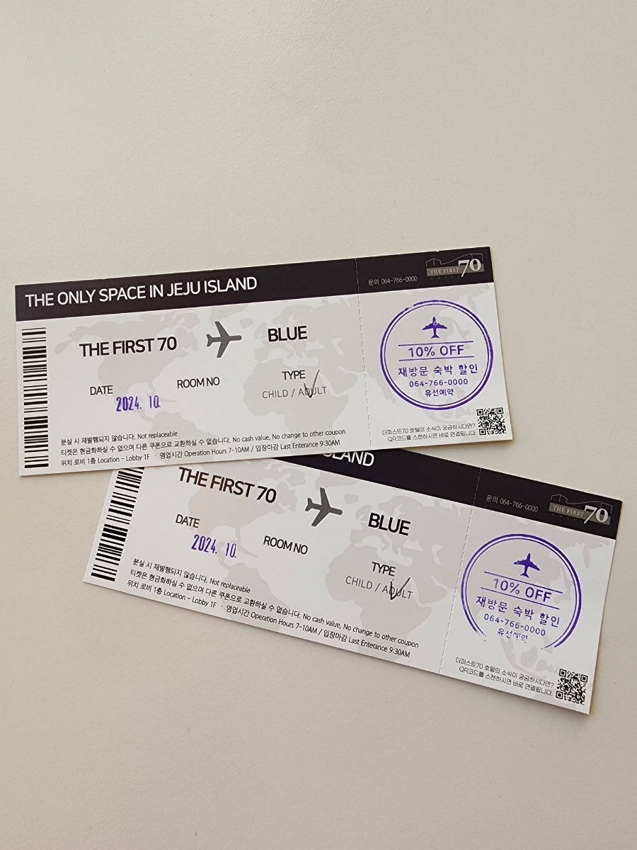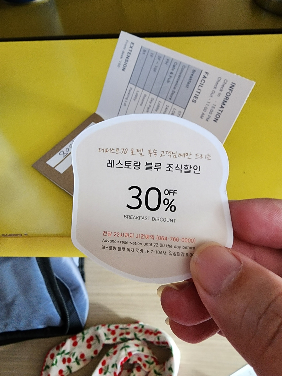 체크인할때 룸키를 받으면서 조식 쿠폰을 받을 수 있어요.