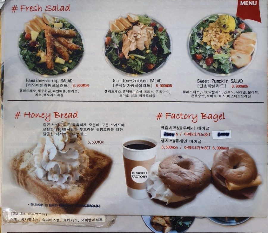 마곡 브런치 브런치 팩토리 메뉴판입니다.