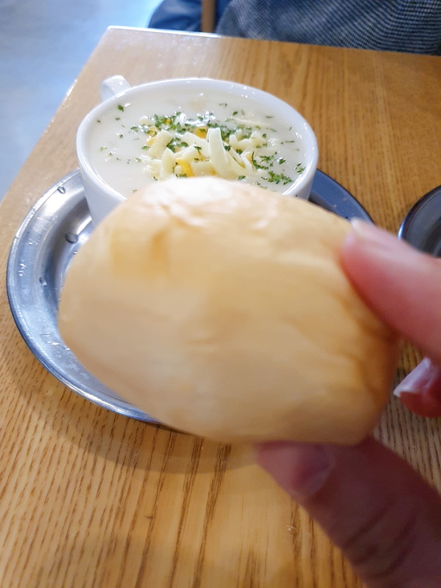 조개스프는 작은 모닝빵이 함께 나오는데요.